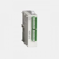Sterownik PLC DVP20SX311R Delta Electronics wyposażony w 8 wejść binarnych, 4 wyjścia analogowe, 6 wyjść przekaźnikowych 2A oraz 2 wejścia analogowe. CPU dysponuje portem Ethernet, slotem kart micro SDHC do 32 GB, mini USB typ B, 2 portami RS485 oraz CANopen. Producent daje możliwość rozbudowy PLC do 512 punktów I/O