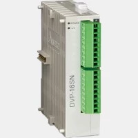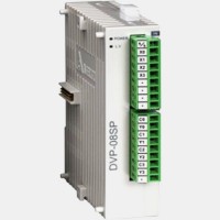 Sterownik PLC DVP20SX311S Delta Electronics wyposażony w 8 wejść binarnych, 4 wyjścia analogowe, 6 wyjść tranzystorowych PNP oraz 2 wejścia analogowe. CPU dysponuje portem Ethernet, slotem kart micro SDHC do 32 GB, mini USB typ B, 2 portami RS485 oraz CANopen. Producent daje możliwość rozbudowy PLC do 512 punktów I/O
