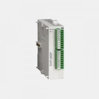 Sterownik PLC DVP20SX311T Delta Electronics wyposażony w 8 wejść binarnych, 4 wyjścia analogowe, 6 wyjść tranzystorowych NPN oraz 2 wejścia analogowe. CPU dysponuje portem Ethernet, slotem kart micro SDHC do 32 GB, mini USB typ B, 2 portami RS485 oraz CANopen. Producent daje możliwość rozbudowy PLC do 512 punktów I/O