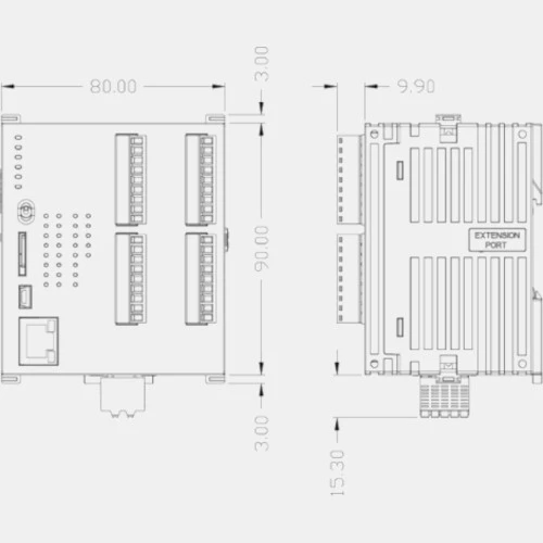 PLC Delta Electronics DVP28SV311R posiada kompaktową obudowę o wymiarach: 90x80x60mm. Jednostka przystosowana jest do montażu na szynie DIN.