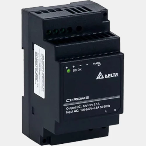 Moduł zasilający DRC-12V30W1AZ o napięciu wyjściowym 12V DC, oraz mocy wyjściowej 25W. Napięcie zasilania tego urządzenia wynosi 90...264 VAC, zaś prąd wyjściowy jest równy 2,1A. 1-fazowy zasilacz DRC-12V30W1AZ posiada plastikową obudowę do montażu na szynie DIN. Moduł może pracować w temperaturze -10...55 °C. Delta Electronics deklaruje sprawność urządzenia na > 88 %. Zasilacz DRC-12V30W1AZ posiada kompaktowe wymiary 91 mm x 53 mm x 55,6 mm, natomiast waga wynosi 0,14 kg . Moduły zasilające serii DRC wyposażone zostały w podwójną izolację, a także zabezpieczenia przepięciowe, przeciążeniowe oraz temperaturowe. Średni czas bezawaryjnej pracy wynosi > 500 000 H.