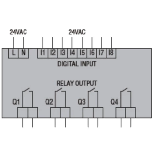 Jednostka główna LRD12RA024 od renomowanego producenta Lovato Electric zasilana jest napięciem 24 VAC. Sterownik programowalny został wyposażony w 8 wejść cyfrowych, oraz 4 wyjścia przekaźnikowe z możliwością rozbudowy o maksymalnie 20 wejść i 24 wyjścia. PLC LRD12RA024 Kinco posiada moc 7 W i pobiera prąd w wysokości 0,29 A. PLC Lovato posiada wyświetlacz LCD, klawiaturę oraz kilka języków menu. Ponadto dysponuje portem RS485 oraz RS232/USB przeznaczonym do podłączenia PC lub też panelu HMI. Producent zaprojektował w urządzeniu kompaktową obudowę o wymiarach 90 x 72 x 54,6 mm i stopniu ochrony IP20. Z kolei wagę określa na 0,25 kg. Sterownik programowalny Kinco dedykowany jest do pracy w temperaturze -20...55 °C. Sterownik PLC LRD12RA024 Lovato Electric służy do bezpośredniego montażu na szynę DIN. Do programowania sterownika dedykowane jest oprogramowanie LRX SW w języku FBD lub LADDER. LRD12RA024 Lovato z powodzeniem stosowany jest w maszynach pakujących lub także przy sterowaniu oświetleniem.
