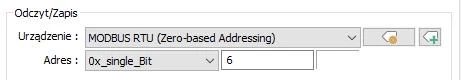 Odczyt wejść binarnych odbywa się za pomocą funkcji Modbus o numerze „1”, adresy są analogiczne jak dla wyjść. Przykładową adresację dla obiektu pokazującego stan wejścia 1 pokazano na rysunku 13.
