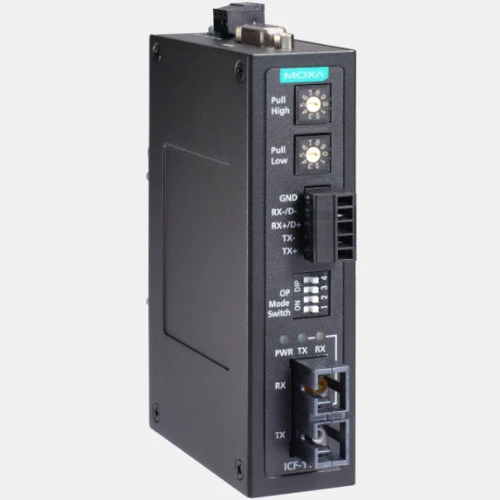 Konwerter izolowany ICF-1150I-M-SC-T marki Moxa o napięciu zasilania 12...24 V DC. Urządzenie konwertuje sygnały RS-232/422/485 do sygnału światłowód wielomodowy, z optoizolacją. Producent podaje szybkość transmisji danych dla konwertera ICF-1150I-M-SC-T na poziomie od 50 bps do 921,6 Kbps. Konwerter dysponuje portem światłowodowym w SC. Okablowanie portu światłowodowego w tym modelu to 50/125; 62,5/125; 100/140 μm. Dystans transmisji dla tego modelu wynosi 5 km, zaś długość fali 850 nm. Ponadto konwerter Moxa ICF 1150 posiada złącze interfejsu RS232 w postaci DB9 żeńskiego, a dla RS485/422 w postaci terminala śrubowego. Dodatkowo urządzenie to ma możliwość pracy w typologii pierścień. Konwerter ICF-1150I-M-SC-T pracuje w zakresie temperatur od -40 do +85 stopni Celsjusza.