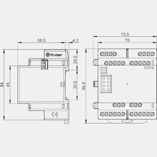 Moduł analogowy 8A.58.9.024.1600 Finder wyposażony w 16 wejść binarnych oraz 8 wyjść przekaźnikowych 6A. Dodatkowo wejścia cyfrowe mogą zostać wykorzytane jako analogowe 0...10V. Rozszerzenie binarne EMR Finder zasilane jest napięciem 12...24 V DC. Rozszerzenie instalowane jest z prawej strony sterownika PRL OPTA. Moduł cyfrowy EMR OPTA Finder posiada kompaktową obudowę o wymiarach: 84x70x56,5mm.