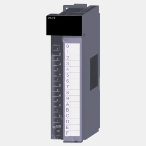 Moduł wejść binarnych QX70 przeznaczony do współpracy ze sterownikami Mitsubishi Electric z rodziny Melsec-Q. Rozszerzenie pozwala rozbudować możliwości sterownika PLC Melsec-Q o 16 wejść binarnych. Prawostronne rozszerzenie binarne 136397 zasilany jest napięciem 5/12 VDC a pobór prądu dla tego urządzenia wynosi 0,055A. Ponadto moduł wejść dwustanowych Melsec-Q został wyposażony w sygnalizację stanu wejść w postaci diod LED. Rozszerzenie QX70 posiada 18-punktową wymienną listwę zaciskową. Producent zaleca stosowanie dla tego modułu przewodów o przekroju od 0,3 do 0,75 mm2. Obudowa modułu cyfrowego Melsec-Q QX70 została wykonana z tworzywa a jej wymiary to: 27,4 x 98 x 90 mm. Waga rozszerzenia wynosi 0,14 kg.