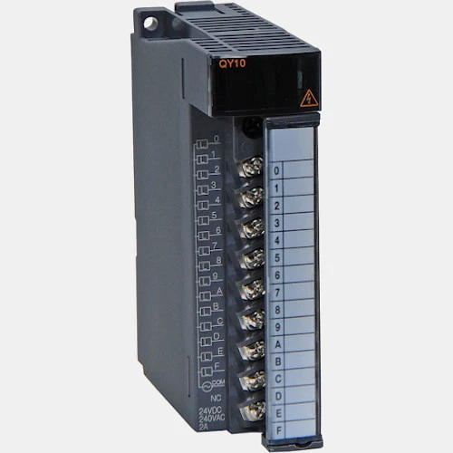 Moduł wyjść binarnych Melesec-Q QY10 przeznaczony do współpracy ze sterownikami PLC Mitsubishi Electric Melsec system Q. Rozszerzenie pozwala na rozbudowanie możliwości sterownika o dodatkowe 16 wyjść przekaźnikowych 2A. Urządzenie zasilane jest napięciem 24 VDC/240 VAC. Producent podaje trwałość mechaniczną rozszerzenia cyfrowego QY10 na poziomie 20 milionów przełączeń, a trwałość elektryczną na poziomie minimum 100 000 przełączeń. W standardzie wszystkie moduły wyjść binarnych MELSEC-Q posiadają wskaźniki stanu każdego wyjścia. Wskaźniki te mają postać diody LED. Moduł Mitsubishi QY10 został wyposażony w złącze w postaci wymiennej 18-punktowej listwy zaciskowej. Producent zaleca stosowanie do rozszerzenia MELSEC-Q 129605 przewodów o przekroju od 0,3mm2 do 0,75 mm2. Prawostronny moduł cyfrowy Melsec-Q 129605 dysponuje kompaktową obudową o wymiarach: 27,4 x 98 x 90 mm i wagę 0,22 kg.
