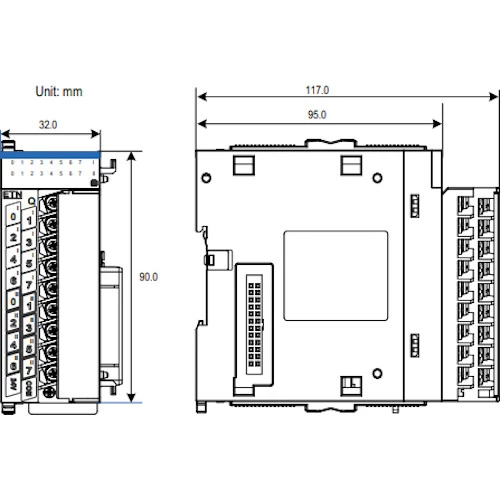 Moduł cyfrowy GL10-0016ETN-INT dedykowany do współpracy ze sterownikami PLC Inovance serii H3U oraz H5U. Rozszerzenie pozwala rozbudować możliwości sterownika PLC o 16 wyjść binarnych NPN. Moduł wyjść binarnych GL10 instalowany jest na szynie DIN z prawej strony jednostki głównej. Rozszerzenie zasilane jest napięciem 24 V DC. Producent podaje prąd wejściowy dla tego modułu na poziomie 110 mA. Rozszerzenie GL10-0016ETN-INT posiada kompaktową obudowę o wymiarach 90 x 117 x 32 mm.