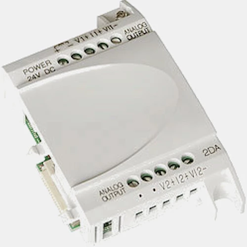 Moduł wyjść analogowych AL2-2DAprzeznaczony do współpracy ze sterownikami PLC Mitsubishi Electric Alpha. Rozszerzenie pozwala na rozbudowanie możliwości sterownika o dodatkowe 2 wyjścia analogowe prądowo-napięciowe. Wymiary modułu wejść analogowych AL2-2DA wynoszą: 90x53,1x24,5mm