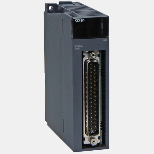 Moduł wejść binarnych QX81 przeznaczony do współpracy ze sterownikami Mitsubishi Electric z rodziny Melsec-Q. Rozszerzenie pozwala rozbudować możliwości sterownika PLC Melsec-Q o 32 wejścia binarne. Prawostronne rozszerzenie binarne 129594 zasilany jest napięciem 24 VDC a pobór prądu dla tego urządzenia wynosi 0,075A. Ponadto moduł wejść dwustanowych Melsec-Q został wyposażony w sygnalizację stanu wejść w postaci diod LED. Rozszerzenie QX81 posiada kompaktowe złącze, 37-stykowe gniazdo D-sub. Producent zaleca stosowanie dla tego modułu przewodów o przekroju 0,3 mm2. Obudowa modułu cyfrowego Melsec-Q QX81 została wykonana z tworzywa a jej wymiary to: 27,4 x 98 x 90 mm. Waga rozszerzenia wynosi 0,16 kg.