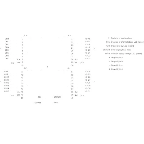 Moduł binarny z serii SIMATIC S7-1500 znanej firmy Siemens. Urządzenie wyposażone jest w 32 wyjścia binarne (24VDC/0,5A). Moc: 3,5 W; napięcie zasilania: 24V DC, waga: 0,28 kg.
