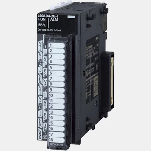 Moduł L60AD4-2GH przeznaczony do współpracy ze sterownikami PLC Mitsubishi MELSEC-L. Rozszerzenie pozwala rozbudować możliwości sterownika o 4 wejścia analogowe prądowo-napięciowe. Rozszerzenie analogowe MELSEC-L charakteryzuje się wysoką dokładnością przetwarzania oraz dużą szybkością przetwarzania. Atutem tych modułów jest prosta nastawa parametrów. Moduł MELSEC-L 263071 został wyposażony w 18-punktową wymienną listwę zaciskową. Kompaktowa obudowa modułu L60AD4-2GH o stopniu ochrony IP20 posiada wymiar: 28,5 x 90 x 117 mmi wagę 200 gram. Producent zaleca stosowanie do modułu analogowego MELSEC-L L60AD4-2GH przewodów o przekroju 0,3 - 0,75mm2.