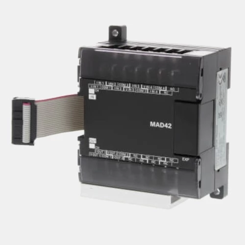 Moduł analogowy CP1W-MAD42 przeznaczony do rozbudowy sterowników PLC Omron CP2E. Rozszerzenie zostało wyposażone w 4 wejścia i 2 wyjścia analogowe .