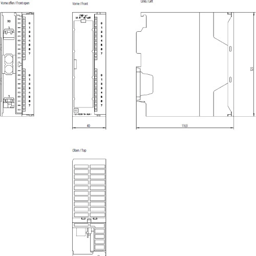 Moduł wejść / wyjść binarnych SM323 6ES7323-1BH01-0AA0 należący do marki Siemens. Posiada 8 wyjść i 8 wejść cyfrowych o napięciu 24V DC. Wbudowana izolacja optyczna. Przeznaczony do współpracy ze sterownikami PLC Siemens S7-300. Urządzenie wyposażono w zieloną diodę LED sygnalizującą pracę. Pobór prądu to 3,5 W, natomiast suma prądu na wyjściu 0,5 A, prąd grupy 2 A. Do podłączenia wymagana jest listwa przyłączeniowa 20-pinowa. Szczelność komponentu została określona na IP20. Kompaktowy moduł wyjść i wejść binarnych Siemens o wymiarach 125 x 40 x 120 mm. Jego waga wynosi zaledwie 220 g.