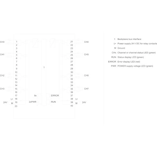 Moduł wyjść binarnych (przekaźnikowych) SIMATIC S7-1500 DQ 8 X 230VAC/5A Siemens. Moduł binarny SIMATIC S7-1500 posiada 8 wyjść przekaźnikowych. Pobór prądu: max. 80 mA . Możliwość izolacji pomiędzy kanałami (dozwolone przełączanie różnych faz). Wymagana jest listwa przyłączeniowa.