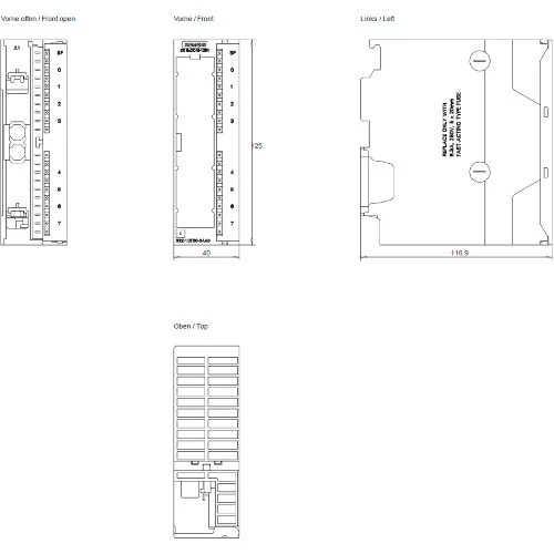 Moduł wyjść binarnych SM322 6ES7322-1CF00-0AA0 należący do marki Siemens. Posiada 8 wyjść cyfrowych o napięciu 48-125 V DC. Wbudowana izolacja optyczna. Przeznaczony do współpracy ze sterownikami PLC Siemens S7-300. Suma prądu na wyjściu wynosi 1,5 A. Do podłączenia wymagana jest listwa przyłączeniowa 20-pinowa. Szczelność komponentu została określona na IP20. Kompaktowy moduł wyjść cyfrowych o wymiarach 125 x 40 x 120 mm. Jego waga wynosi zaledwie 250 g.