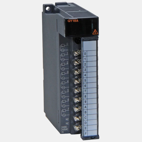 Moduł wyjść binarnych Melesec-Q QY18A przeznaczony do współpracy ze sterownikami PLC Mitsubishi Electric Melsec system Q. Rozszerzenie pozwala na rozbudowanie możliwości sterownika o dodatkowe 8 wyjść przekaźnikowych 2A. Urządzenie zasilane jest napięciem 24 VDC/240 VAC. Producent podaje trwałość mechaniczną rozszerzenia cyfrowego QY18A na poziomie 20 milionów przełączeń, a trwałość elektryczną na poziomie minimum 100 000 przełączeń. W standardzie wszystkie moduły wyjść binarnych MELSEC-Q posiadają wskaźniki stanu każdego wyjścia. Wskaźniki te mają postać diody LED. Moduł Mitsubishi QY81P został wyposażony w złącze w postaci 18-punktowej wymiennej listwy zaciskowej. Producent zaleca stosowanie do rozszerzenia MELSEC-Q 136401 przewodów o przekroju od 0,3-0,75mm2. Prawostronny moduł cyfrowy Melsec-Q 136401 dysponuje kompaktową obudową o wymiarach: 27,4 x 98 x 90 mm i wagę 0,22 kg.