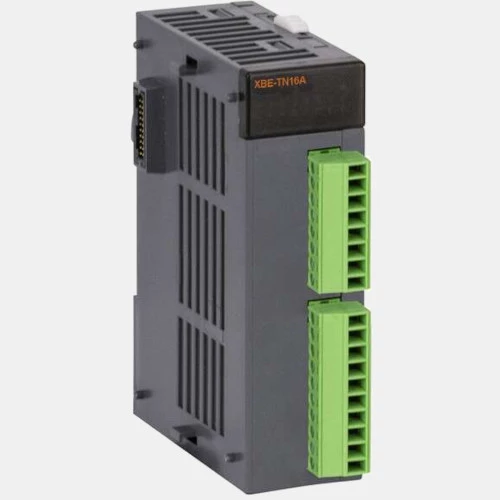 Moduł binarny XBE-TN16A XBE LG zasilany napięciem mieszczącym się w przedziale 20,4...28,8V DC. XBE-TN16A wyposażony został w 16 wyjść tranzystorowych NPN i pobiera prąd w wysokości 0,06 A. Moduł rozszerzający XBE-TN16A XBE LS/LG dedykowany jest do rozszerzenia jednostki głównej STANDARD, HIGH, ULTRA oraz SLIM. Moduł 16 wyjść tranzystorowych NPN LS montowany na bocznej ścianie sterownika PLC.