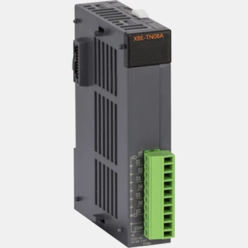 Moduł binarny XBE-TP08A XBE LG zasilany napięciem mieszczącym się w przedziale 20,4...28,8V DC. XBE-TP08A wyposażony został w 8 wyjść tranzystorowych PNP i pobiera prąd w wysokości 0,04 A. Moduł rozszerzający XBE-TP08A XBE LS/LG dedykowany jest do rozszerzenia jednostki głównej STANDARD, HIGH, ULTRA oraz SLIM. Moduł 8 wyjść tranzystorowych PNP LS montowany na bocznej ścianie sterownika PLC.