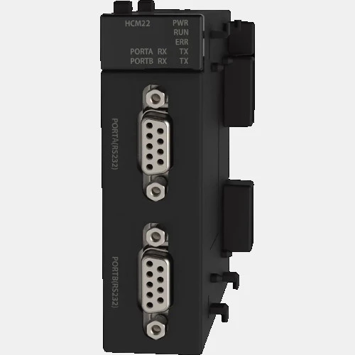 Moduł komunikacyjny MHCM22 Fatek. Rozszerzenie pozwala na rozbudowanie możliwości sterownika PLC Fatek M o dodatkowe 2 porty szeregowe RS232. Moduł obsługuje protokoły: Fatek (slave i master), Modbus RTU/ASCII (slave i master).