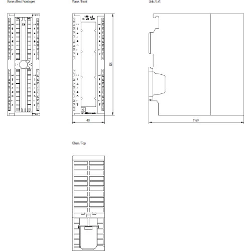 Moduł wejść binarnych SM321 6ES7321-1BL00-0AA0 należący do marki Siemens. Posiada 32 wejścia cyfrowe o napięciu 24V DC z izolacją optyczną. Przeznaczony do współpracy ze sterownikami PLC Siemens S7-300. Do instalacji wymagana jest listwa przyłączeniowa 40-pinowa. Pobór mocy wynosi 6,5 W. Temperatura otoczenia pracy oscyluje wokół przedziału -20 do 60 stopni Celsjusza. Kompaktowy moduł binarny S7-300 o wymiarach 125 x 40 x 120 mm. Waga produktu to 0,29 kg.