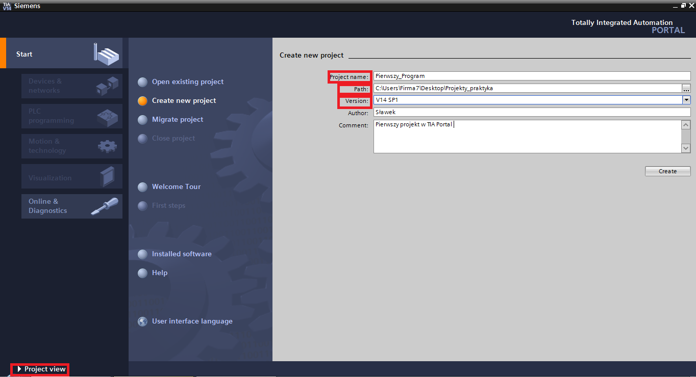 Założenie projektu jest rzeczą stosunkowo prostą, wystarczy postępować wg instrukcji: