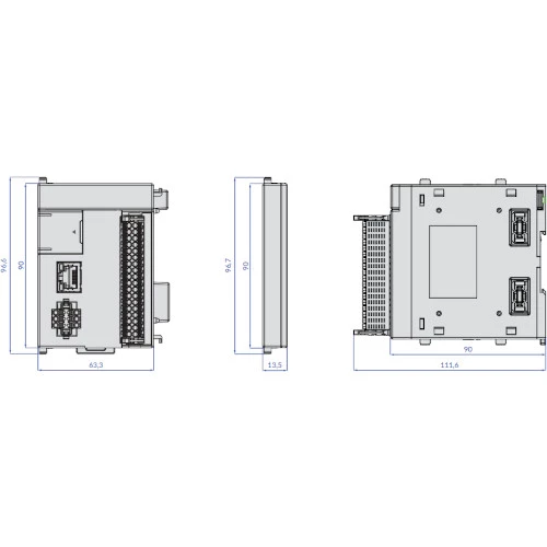 cyfrowych, 256 punktów analogowych oraz do 15 portów komunikacyjnych. Model ten sterownika PLC Fatek M obsługuje do 24 osi. Ponadto sterownik ten posiada wbudowany RTC. Wymiary PLC MS3C6-1616T wynoszą: 77x90x90mm.