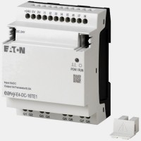 Przekaźnik programowalny należący do rodziny EASY E4 EATON o kodzie EASY-E4-DC-12TC1 z wyświetlaczem. Sterownik został wyposażony w 8 wejść binarnych 24VDC. Dodatkowo istnieje możliwość rozbudowy tak aby skonfigurować część wejść binarnych by mogły służyć jako analogowe. Urządzenie Eaton jest napięciem 24VDC. Stopień ochrony IP20. Sterownik PLC EASY-E4-DC-12TCX1 posiada port Ethernet, Webserwer, zegar czasu rzeczywistego oraz możliwość rozbudowy o dodatkowe moduły wejść/wyjść.