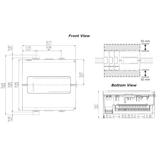 Sterownik PLC USC-B10-TR22 z aplikacją wirtualnego HMI, która umożliwia zdalny dostęp do sterownika, za pomocą tabletów, komputerów, czy też smartfonów poprzez VNC. Jednostka posiada 10 wejść binarnych i 2 wejścia analogowe prądowo-napięciowe oraz 8 wyjść przekaźnikowych. Jednostka centralna USC-B3 została wyposażona w 2 porty Ethernet oraz port USB Host. Urządzenie Unistream B3 jest w stanie pracować w zakresie temperatur -20...55°C. PLC USC-B3-R20 obsługuje: RS232/RS485, CANopen, ModbusRTU, UniCAN, ModbusTCP, Ethernet/IP, FTP, MQTT, SQL, SNMP. Wymiary USC-B3-R20 wynoszą 121,1x123,2x63,9mm.