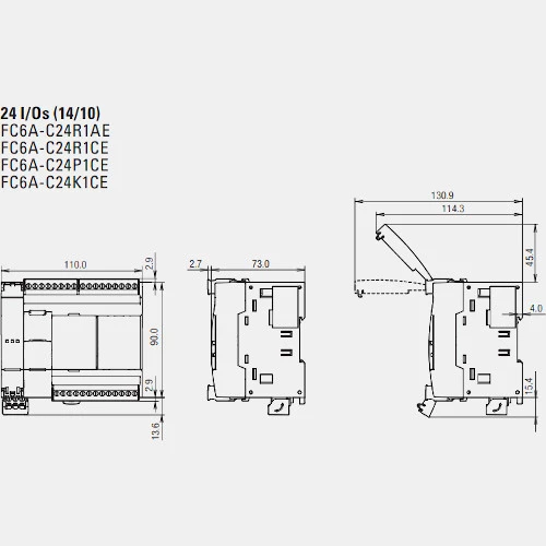 Sterownik PLC FC6A-C24R1AE producenta IDEC z serii FC6A zasilany jest napięciem 230V AC. CPU FC6A-C24R1AE wyposażony został w 14 wejść binarnych i 10 wyjść przekaźnikowych z możliwością rozszerzenia do 504 punktów cyfrowych oraz 124 punktów analogowych. Jednostka centralna FC6A-C24R1AE IDEC posiada także port Ethernet oraz port RS232 i RS485 i slot na karty SD. Pamięć programu dla PLC FC6A Idec wynosi 640 kB. Dodatkowo producent wyposażył jednostki w RTC oraz kalendarz z opcją synchronizacji SNTP. Konfiguracja PLC MicroSmart CPU Compact FC6A-C24R1AE odbywa się przy pomocy narzędzia WindLDR. Sterownik PLC FC6A-C24R1AE został zaprojektowany w wymiarach 90 x 110 x 73 mm. Obudowa PLC FC6A wykonana jest o stopniu ochrony IP20 i może pracować w temperaturze od -10...55 stopni Celsjusza.