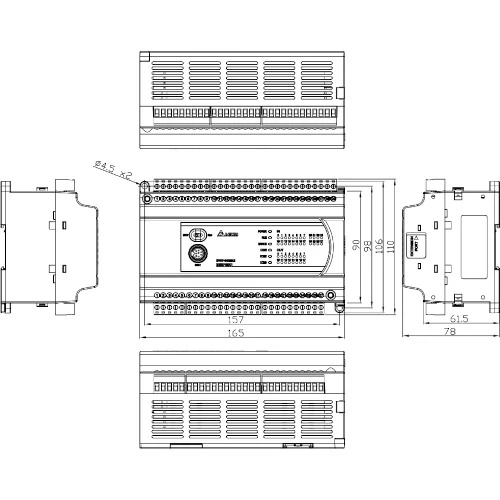 Sterownik PLC DVP30EX200R Delta Electronics zasilany jest napięciem 230 VAC o częstotliwości 47,5...63Hz. Jednostka główna została wyposażona w 16 wejść cyfrowych, 3 wejścia analogowe oraz 10 wyjść przekaźnikowych i 1 wyjście analogowe. Ponadto sterownik PLC Delta ma możliwość rozbudowy do 256 punktów wejść/wyjść. DodatkowoDVP30EX200R dysponuje portem Ethernet, RS232 oraz RS485 z obsługą protokołu Modbus ASCII/RTU. Wydajny 32 bitowy procesor zapewnia płynną pracę urządzenia. Pamięć programu wynosi 16 k . Wymiary sterownika DVP30EX wynoszą 165x110x78mm.