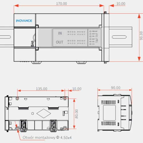 Sterownik PLC H3U-1616MR-XP H3U producenta Inovance zasilany jest napięciem 230V AC. Sterownik programowalny H3U-1616MR-XP został wyposażony w 16 wejść binarnych w tym 8 szybkich i 16 wyjść przekaźnikowych. Ponadto posiada możliwość rozszerzenia lokalnie do 128 wejść wyjść cyfrowych i do 24 wejść/wyjść analogowych oraz zdalnie do 7986 wejść i wyjść cyfrowych i 1488 wej/wyj analogowych. PLC Inovance dysponuje także fabrycznie wbudowanymi portami RS232, RS485, portem Ethernet, komunikacją Modbus, CAN/ CANlink oraz wejściem USB. Jednostka centralna H3U-1616MR-XP H3U Inovance zaprojektowana została w wymiarach 90 x 170 x 90 mm. Do programowania sterownika PLC H3U-1616MR-XP dedykowane jest intuicyjne, darmowe oprogramowanie Autoshop. Urządzenie przeznaczone zostało do pracy w temperaturze od -5...45 °C.