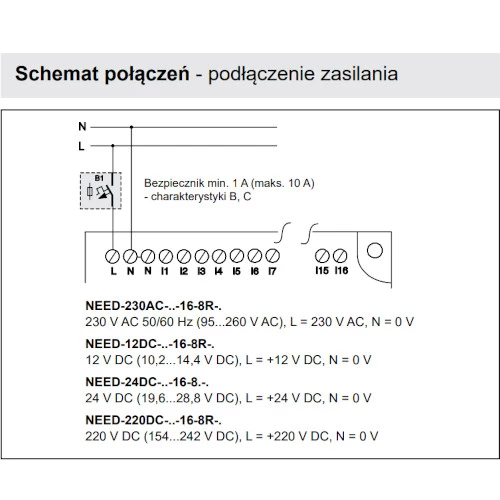 Sterownik Relpol Need posiada trójkolorowy wskaźnik stanu urządzenia. NEED-12DC-11-16-8R można rozbudować o kartę pamięci 1 kB. Przekaźnik programowalny NEED Relpol o stopniu ochrony IP20 montowany jest na szynę DIN lub płytę montażową. Ma możliwość pracy w temperaturze -20...55 °C i posiada wymiary 55 x 132 x 90 mm.