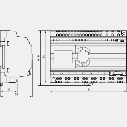 Przekaźnik programowalny NEED Relpol o stopniu ochrony IP20 montowany jest na szynę DIN lub płytę montażową. Ma możliwość pracy w temperaturze -20...55 °C i posiada wymiary 55 x 132 x 90 mm.