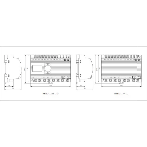 Przekaźnik programowalny NEED Relpol o stopniu ochrony IP20 montowany jest na szynę DIN lub płytę montażową. Ma możliwość pracy w temperaturze -20...55 °C i posiada wymiary 55 x 132 x 90 mm.