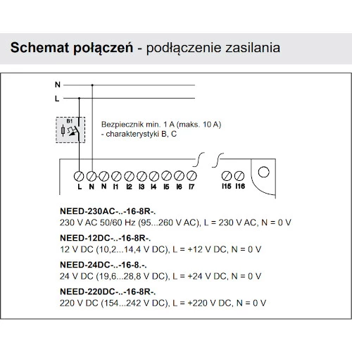 Sterownik PLC NEED-24DC-11-16-8R producenta Relpol z wbudowanym przełącznikiem trybu pracy STOP/RUN zasilany napięciem 24V DC o częstotliwości napięcia mieszczącego się w przedziale 47...63 Hz. Przekaźnik 857366 bez wyświetlacza został wyposażony w 16 wejść binarnych, w tym 3 wejścia analogowe napięciowo-prądowe oraz 8 wyjść przekaźnikowych.