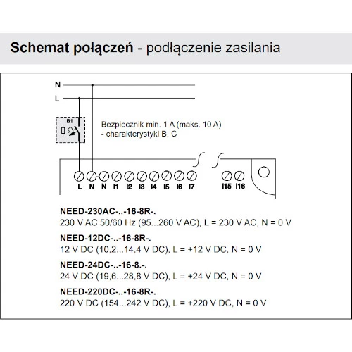 Przekaźnik programowalny NEED Relpol o stopniu ochrony IP20 montowany jest na szynę DIN lub płytę montażową. Ma możliwość pracy w temperaturze -20...55 °C i posiada wymiary 55 x 132 x 90 mm.