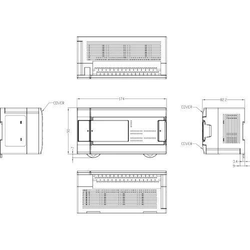 Sterownik PLC DVP48EH00T2 Delta Electronics zasilany jest napięciem 230 VAC o częstotliwości 47,5...63Hz. Jednostka główna została wyposażona w 24 wejścia cyfrowe oraz 24 wyjścia tranzystorowych 0,5A. Ponadto sterownik PLC ma możliwość rozbudowy do 512 punktów wejść/wyjść. Dodatkowo DVP48EH00T2 dysponuje portem Ethernet, RS232 oraz RS485 z obsługą protokołu Modbus ASCII/RTU. Wydajny 32 bitowy procesor zapewnia płynną pracę urządzenia. Wymiary sterownika PLC Delta DVP48EH wynoszą 90x174x82mm.