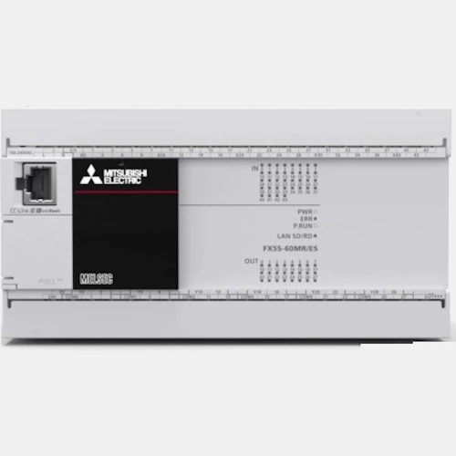 Sterownik PLC FX5S-60MR/ES serii Melsec-iQ F Mitsubishi Electric zasilany jest napięciem 24 V DC. Jednostka CPU Mitsubishi wykonana została z fabrycznie zabudowanym zasilaczem oraz procesorem centralnym. Producent wyposażył PLC FX5S-60MR/ES w: 36 wejść binarnych i 24 wyjść przekaźnikowych z możliwością rozbudowy o dodatkowe punkty wejść/wyjść. Ponadto ma wbudowany port RS485. Sterownik ten posiada 16 000 kroków pamięci. Sterownik PLC Melsec F posiada także funkcje szybkich liczników i wyjścia pozycjonujące. Kolejnym atutem tego sterownika są zainstalowane diody LED wskazujące aktualny stan wejść/wyjść. FX5S-60MR/ES Mitsubishi przeznaczony jest do pracy w temperaturze 0...55°C. PLC FX685467 wykonany został w obudowie o stopniu ochrony IP10 i wymiarach 175 x 90 x 79 mm. Waga tego sterownika PLC Mitsubishi wynosi 0,65 kg.