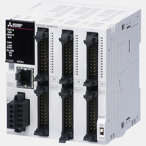 Sterownik PLC FX5UC-96MT/DSS serii Melsec-FXMitsubishi Electric o mocy 11 W zasilany napięciem 24V DC. FX5UC-96MT/DSS wyposażony został w 48 wejść i 48 wyjść tranzystorowych PNP. Jednostka CPU Mitsubishi wykonana została z fabrycznie zabudowanym zasilaczem oraz procesorem centralnym. Producent w PLC FX5UC-96MT/DSS zastosował 48 wejść i 48 wyjść tranzystorowych PNP. Ponadto ma wbudowany port RS485, zegar czasu rzeczywistego RTC, a także slot na karty SD. Sterownik PLC Melsec FX posiada także funkcje szybkich liczników i wyjścia pozycjonujące. FX5UC-96MT/DSS Mitsubishi przeznaczony jest do pracy w temperaturze 0...55°C. PLC FX wykonany został w obudowie o stopniu ochrony IP10 i wymiarach 90 x 82 x 89 mm.