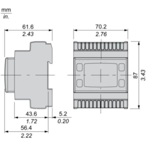 Sterownik PLC Modicon TM171OBM22R Schneider. Jednostka została wyposażono w: 6 wejść binarnych, 3 wejścia analogowe, 6 wyjść analogowych oraz wyjść binarnych. PLC TM171OBM22R dysponuje komunikacją: LAN, Modbus po RS485. Sterownik Modicon M171 Schneider Electric zasilany jet napięciem 12...24 VDC/VAC. Jednostka centralna TM171OBM22R bez wyświetlacza posiada kompaktową obudowę o stopniu ochrony IP20, przystosowaną do montażu na szynie DIN. Wymiary PLC TM171OBM22R wynoszą: 87x70,2x61,6mm. Waga urządzenia to: 0,19kg. Sterownik PLC M171 uzyskał następujące certyfikaty: EAC, CE, cURus, CSA, RCM.
