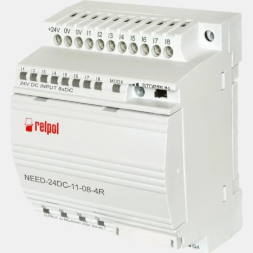 Sterownik PLC NEED-24DC-11-08-4R Relpol stosowany jest w aplikacjach sterowania oświetleniem, wentylatorami czy schodami ruchomymi. Cieszy się również powodzeniem przy sterowaniu procesem produkcyjnym.