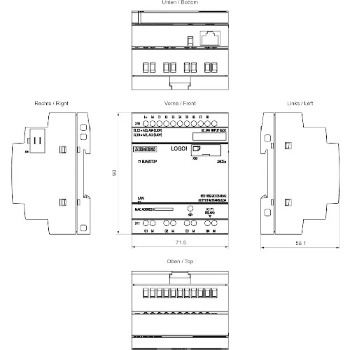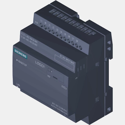 Sterownik PLC 6ED1052-2CC08-0BA2 Siemens zasilany napięciem mieszczącym się w przedziale 24 VDC. Moduł logiczny z Ethernetem. PLC posiada wbudowane: 8 wejść binarnych (24V DC) oraz 4 wyjścia tranzystorowe (1A) z możliwością rozbudowy o dodatkowe moduły rozszerzeń. Sterownik PLC LOGO! 8.4 Siemens dysponuje pamięcią 400 bloków oraz ma możliwość logowania danych na kartach pamięci SD, zintegrowany serwer WWW oraz obsługą MQTT. Jednostka centralna 6ED1052-2CC08-0BA2 konfigurowana jest za pomocą oprogramowania LOGO! soft comfort V8.4 lub nowszej wersji. Jednostka przystosowana jest do montażu na szynie DIN. Przekaźnik programowalny 24CE LOGO! 8.4 posiada obudowę o wymiarach 71,5x90x60mm.