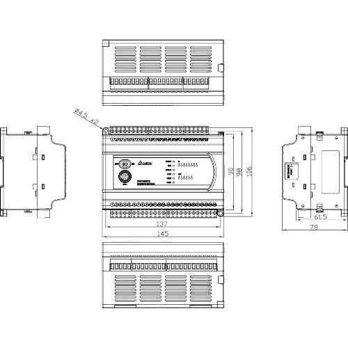 Sterownik PLC DVP20EX200R Delta Electronics zasilany jest napięciem 230 VAC o częstotliwości 47,5...63Hz. Jednostka główna została wyposażona w 8 wejść cyfrowych, 4 wejścia analogowe oraz 6 wyjść przekaźnikowych i 2 wyjścia analogowe. Ponadto sterownik PLC Delta ma możliwość rozbudowy do 256 punktów wejść/wyjść. DodatkowoDVP20EX200R dysponuje portem Ethernet, RS232 oraz RS485 z obsługą protokołu Modbus ASCII/RTU. Wydajny 32 bitowy procesor zapewnia płynną pracę urządzenia. Pamięć programu wynosi 16 k . Wymiary sterownika DVP20EX wynoszą 145x110x78mm.
