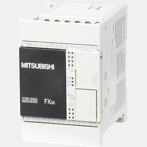 Sterownik PLC FX3S-14MR/ES serii Melsec-F Mitsubishi Electric o mocy 6,5 W zasilany napięciem 230 V AC. Jednostka CPU Mitsubishi wykonana została z fabrycznie zabudowanym zasilaczem oraz procesorem centralnym. Producent wyposażył PLC FX3S-14MR/ES w: 8 wejść binarnych i 6 wyjść przekaźnikowych z możliwością rozbudowy do 30 lokalnych punktów wejść/wyjść. Ponadto ma wbudowany port RS422, USB. Sterownik ten posiada 16 000 kroków pamięci Sterownik PLC Melsec F posiada także funkcje szybkich liczników i wyjścia pozycjonujące. Kolejnym atutem tego sterownika są zainstalowane diody LED wskazujące aktualny stan wejść/wyjść. FX3S-14MR/ES Mitsubishi przeznaczony jest do pracy w temperaturze 0...55°C. PLC FXFX3S-14MR/ESwykonany został w obudowie o stopniu ochrony IP10 i wymiarach 90 x 60 x 49 mm. Waga tego sterownika PLC Mitsubishi wynosi 0,3 kg.
