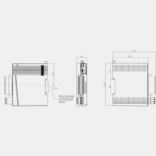 Sterownik PLC Easy301-0808TN Inovance zasilany jest napięciem 24 VDC. CPU Easy301 dysponuje 8 szybkimi wejściami do 200kHz oraz 8 wyjściami tranzystorowymi w logice NPN. Jednostka centralna EASY301-0808TN może zostać rozbudowano o maksymalnie 8 modułów GL20 ale nie ma możliwości podłączenia kart GE20. Inovance wyposażył jednostkę centralna easy 301 w porty szeregowe RS232, RS485, USB typ C oraz komunikację Modbus RTU/ASCII i wsparcie dla free protocol. Sterownik ten obsługuje do 4 osi sterowanych impulsowo. Pamięć programu producent podaje dla tej jednostki na 128 000 kroków, a pamięć danych 1 Mb. Czas wykonywania instrukcji szacowany jest na 20 000 kroków/ms. Sterownik PLC Easy Inovance obsługuje następujące języki programowania: LD, SFC, FB/FC, ST. Kompaktowa obudowa EASY301-0808TN przystosowana jest do montażu na szynie DIN a jej wymiary wynoszą: 24x100x83mm. Waga PLC to 135 gramy.