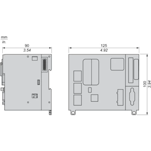 Sterownik PLC TM262L10MESE8T posiada obudowę z tworzywa o wymiarach 100 x 125 x 90 mm i wadze 650 g. Producent deklaruje możliwość pracy jednostki w temperaturze -10 ...55 stopni C.