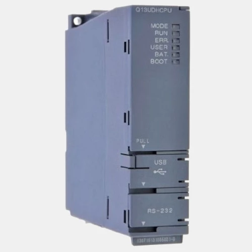 Sterownik PLC Melsec-Q Q13UDHCPU Mitsubishi Electric został wyposażony w 130 tysięcy kroków pamięci programu. Jednostka centralna Melsec system Q Q13UDHCPU może zostać rozbudowana do 4096 lokalnych punktów wejść/wyjść oraz 8192 punktów wejść/wyjść lokalnych wraz z rozproszonymi. Producent wyposażył sterownik PLC Q13UDHCPU w port USB oraz port RS232. Czas cyklu dla tej jednostki głównej Melsec-Q Mitsubishi wynosi 9,5 ns dla LD oraz 19 NS dla MOV. Sterownik PLC Q Mitsubishi został wyposażony w kompaktową obudowę o wymiarach: 27,4mm x 98mm x 89,3mm oraz wadze 0,22kg