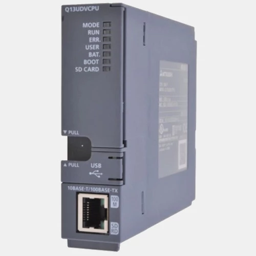 Sterownik PLC Melsec-Q Q13UDVCPU Mitsubishi Electric został wyposażony w 130 tysięcy kroków pamięci programu. Jednostka centralna Melsec system Q Q13UDVCPU może zostać rozbudowana do 4096 lokalnych punktów wejść/wyjść oraz 8192 punktów wejść/wyjść lokalnych wraz z rozproszonymi. Producent wyposażył sterownik PLC Q13UDVCPU w port USB oraz port Ethernet. Czas cyklu dla tej jednostki głównej Melsec-Q Mitsubishi wynosi 1,9 ns dla LD oraz 3,9 NS dla MOV. Sterownik PLC Q Mitsubishi został wyposażony w kompaktową obudowę o wymiarach: 27,4mm x 98mm x 115mm oraz wadze 0,2kg