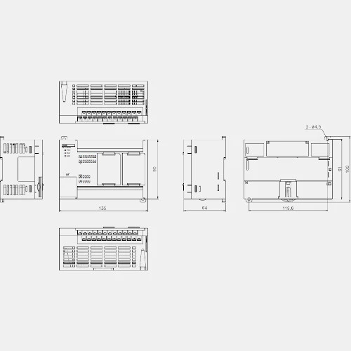 Sterownik PLC XBC-DN20E XBC LG zasilany napięciem mieszczącym się w przedziale 100...240 i szybkości przetwarzania 240ms/krok. Programowany w języku drabinkowym. XBC-DN20E wyposażony został w 12 wejść i 8 wyjść tranzystorowych NPN. Modułowy sterownik PLC można rozszerzyć maksymalnie do 28 wejść/wyjść i 2 modułów. Sterownik PLC XBC LS dysponuje portami komunikacyjnymi RS232, RS485. Zapewniają obsługę 4 kanałów szybkich liczników o częstotliwości do 4 kHZ. Sterownik PLC XBC-DN20E LG o wymiarach 100 x 90 x 64 mm.